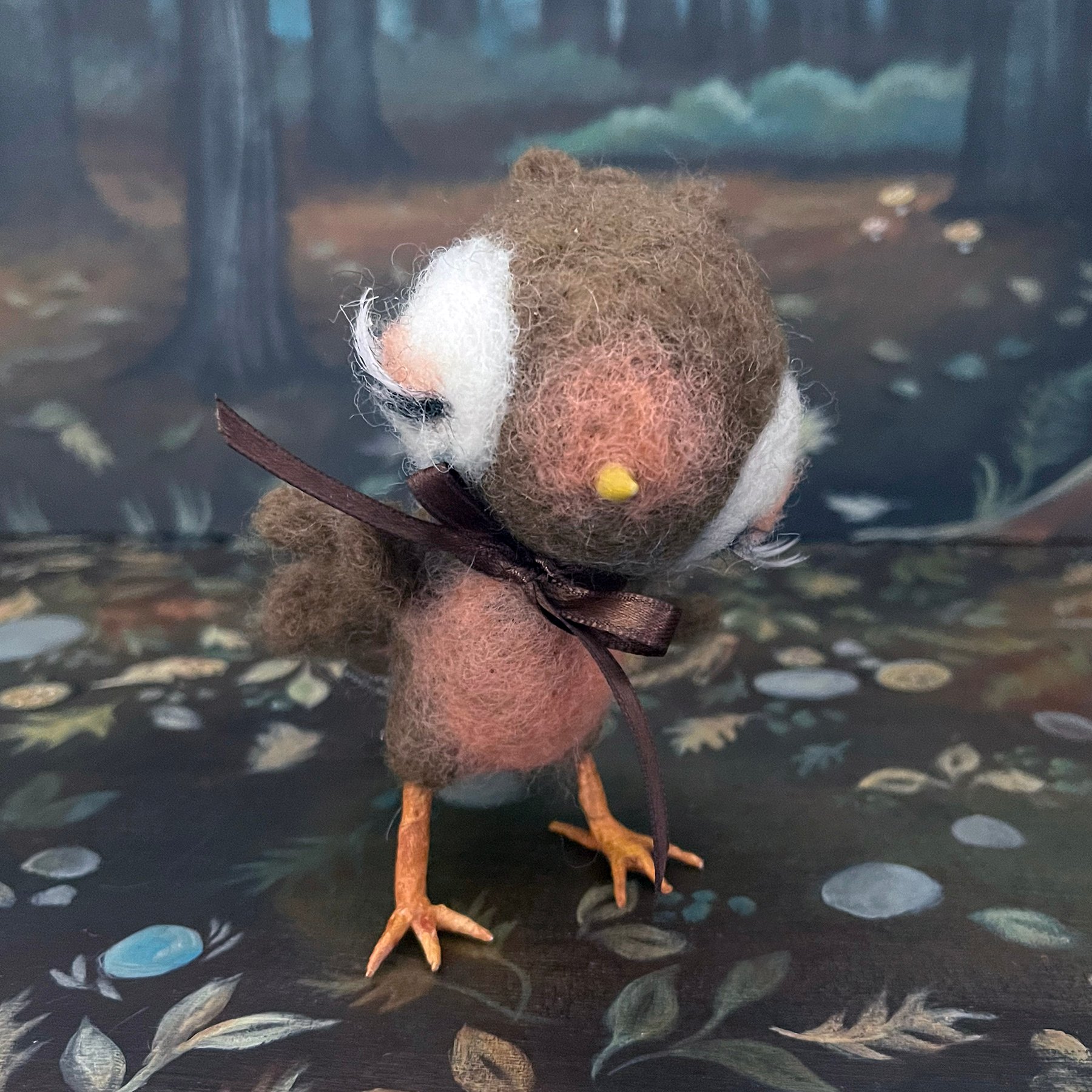 Wool Sculpted Flutter is made of wire, wool and clay. Flutter stands about 4.25 inches tall.