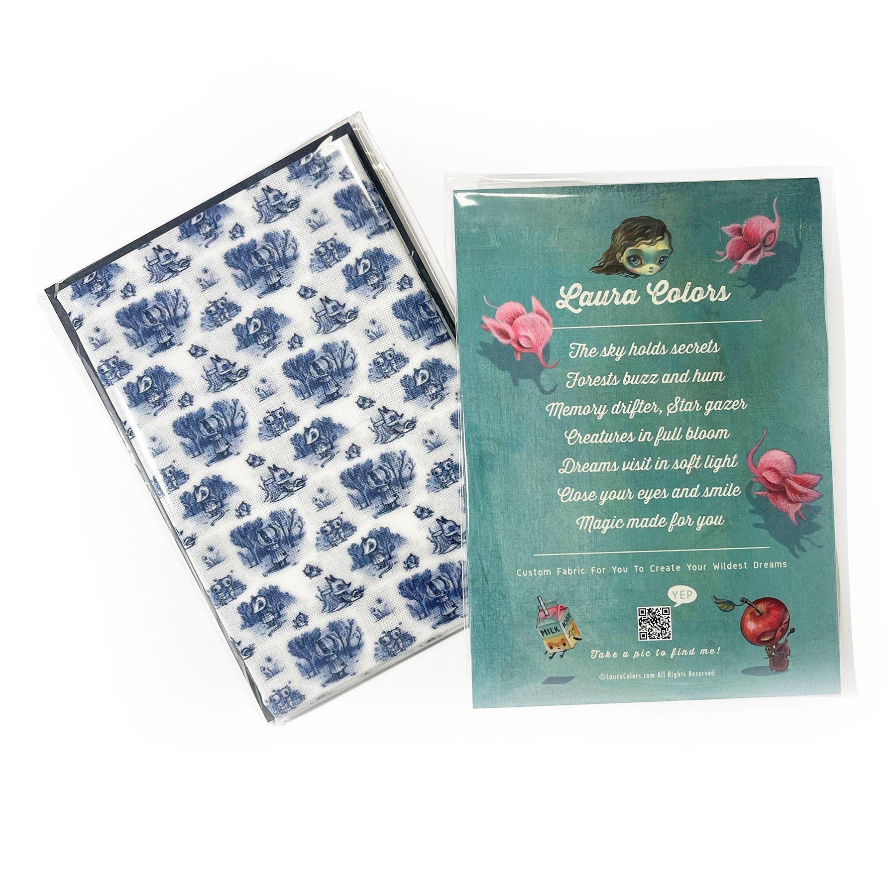 Meadow Tales in Blue is a small scale fabric design by Laura Colors featuring hand painted scenes of woodland animals in a toile style print. Printed on 100% cotton, each fat quarter measures approximately 18 x 21 inches. The fabric has a 120 thread count with minimal shrinkage of about 5 - 6%.