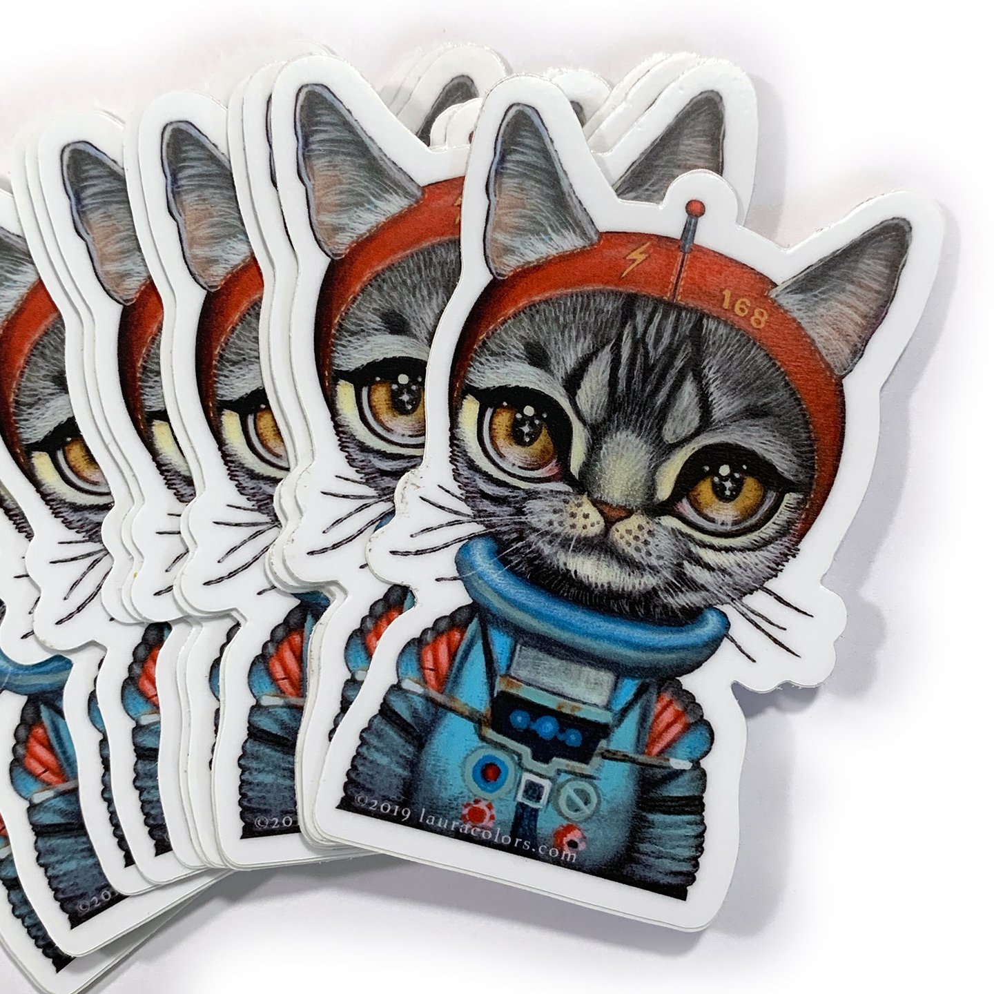 3" tall vinyl space cat sticker