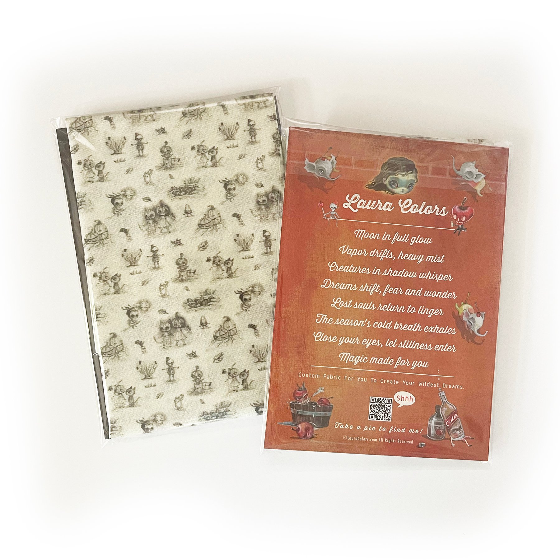 Spooky Adventures is a small scale fabric design by Laura Colors. Printed on 100% cotton, each fat quarter measures approximately 18 x 21 inches. The fabric has a 120 thread count with minimal shrinkage of about 5 - 6%.